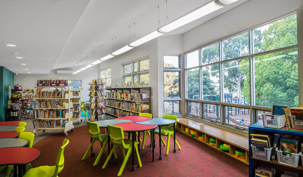 Master planning of an existing school. Library project visually presents an 'innovative' conscious school to the wider community. Facility supports the International Bachelorette PYP Learning program of the school. Internal spatial layout provides seamless opportunities for simultaneous student groups to access research based learning. Improved staff facilities improving collaboration and teacher interaction.
